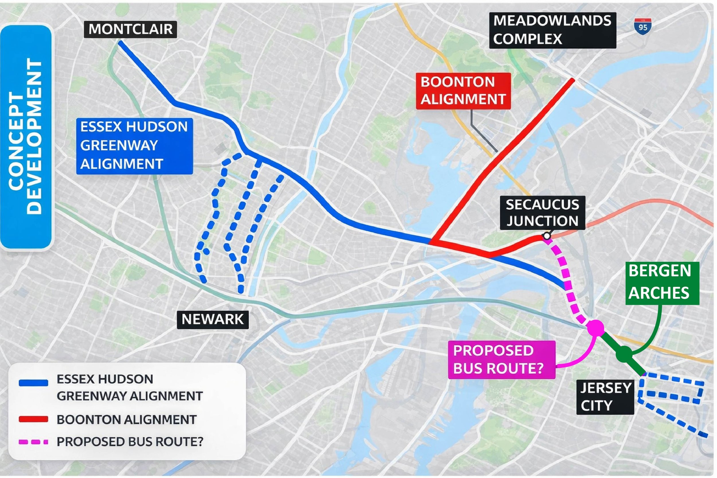 Community advocates are asking that any project in the Bergen Arches include a greenway component—a safe public path for walking and biking—so the corridor can support both transit and open space for residents.